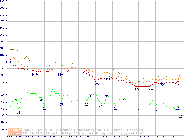 U6 (5400rpm,UltraATA/100 2MB 40GB/Platter)の最安値推移