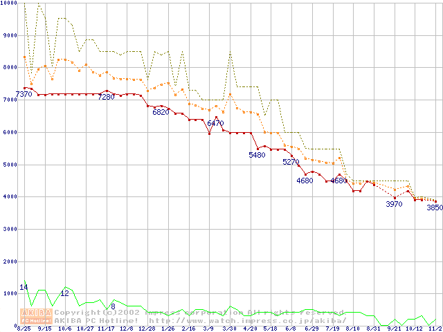 Socket A (PGA,FSB 200MHz,L2 64KB,Spitfire)の最安値推移