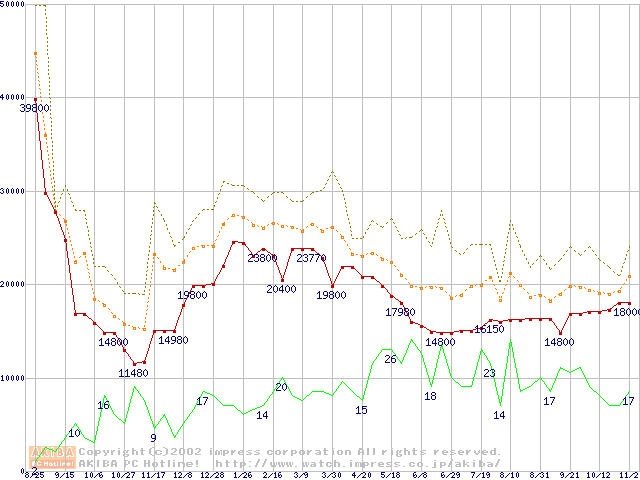メモリ主要製品の最安値推移