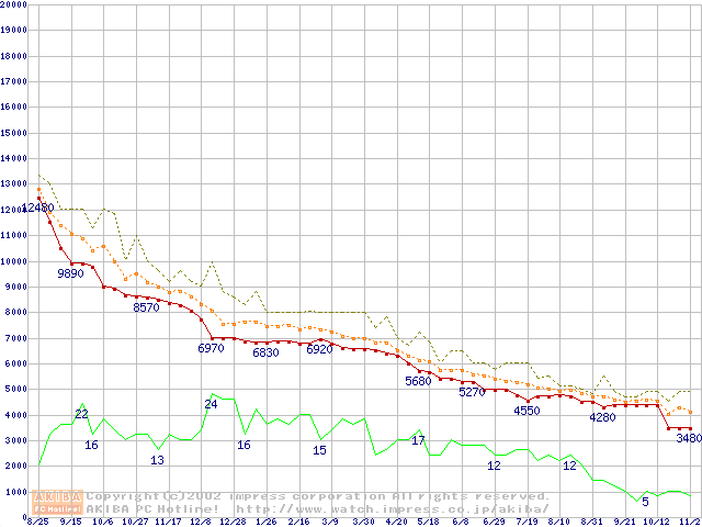 Socket A (PGA,FSB 200MHz,L2 64KB,Morgan)の最安値推移