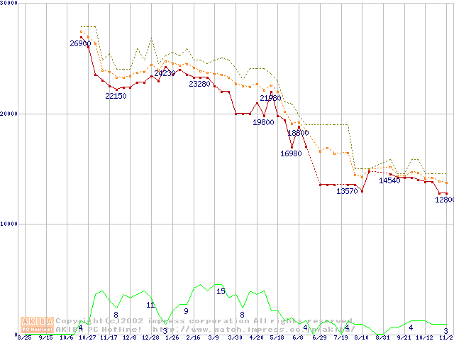 Socket A (OPGA,FSB 266MHz,L2 256KB,Palomino)の最安値推移