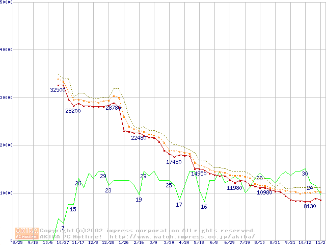 Athlon XP 1800+ (1.53GHz) リテールパッケージの価格推移