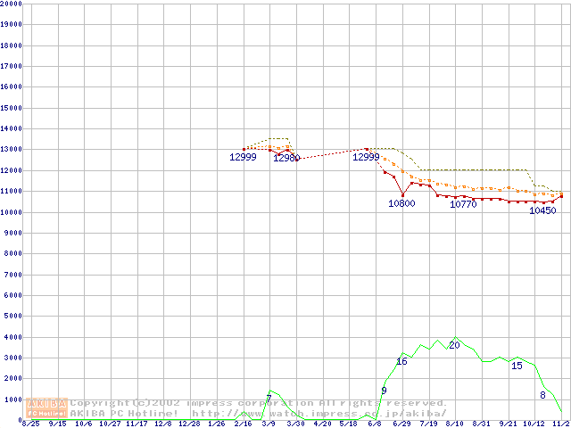 MKシリーズ (9.5mm,4200rpm,2MB,FDB,20GB/Platter)の最安値推移