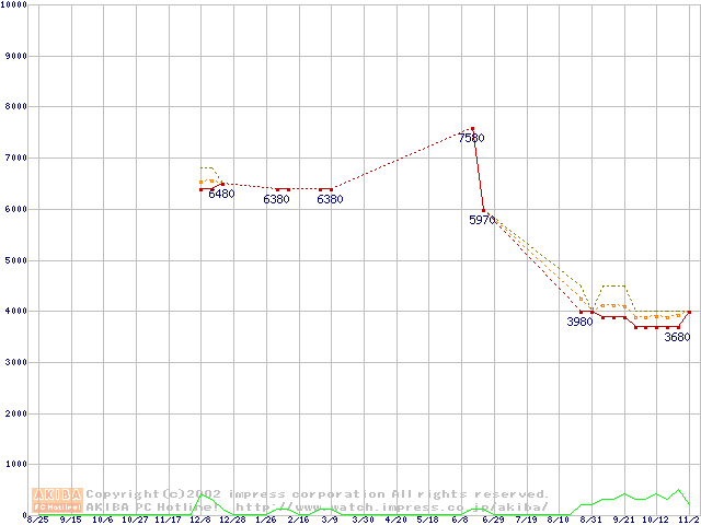 Socket 370 (PGA,FSB 133MHz,L2 64KB)の最安値推移