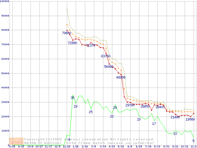 Pentium 4 2.20GHz リテールパッケージの価格推移