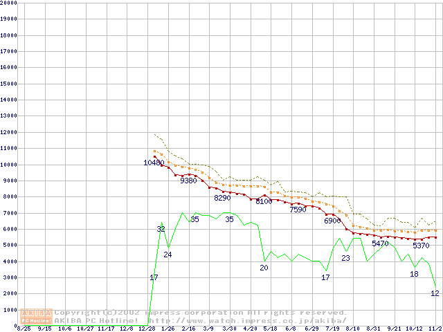 Celeron 1A GHz FC-PGA2 リテールパッケージの価格推移