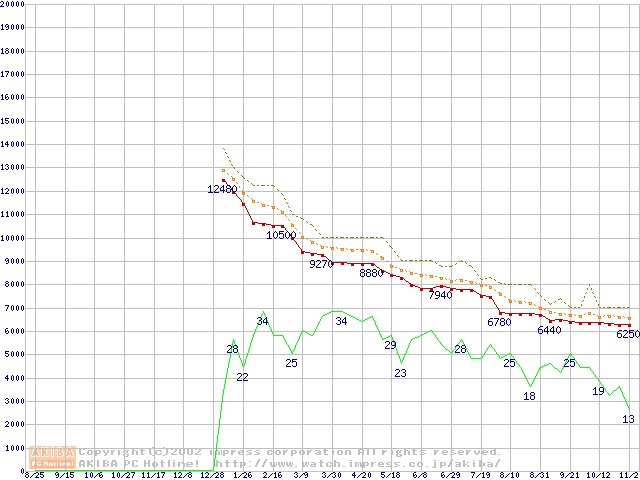 Celeron 1.10A GHz FC-PGA2 リテールパッケージの価格推移