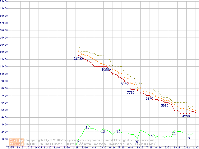 Socket A (PGA,FSB 200MHz,L2 64KB,Morgan)の最安値推移