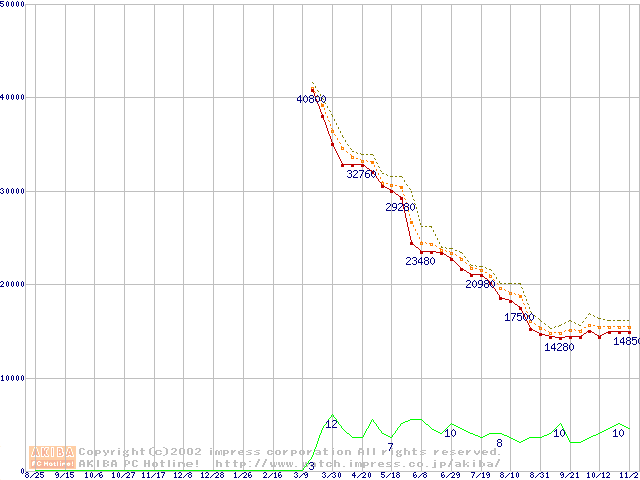 Socket A (OPGA,FSB 266MHz,L2 256KB,Palomino)の最安値推移