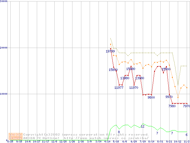 PC3000(DDR366) DDR SDRAM DIMMの最安値推移