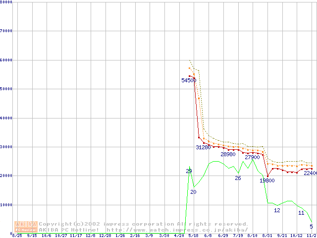 Pentium 4 2.26GHz リテールパッケージの価格推移
