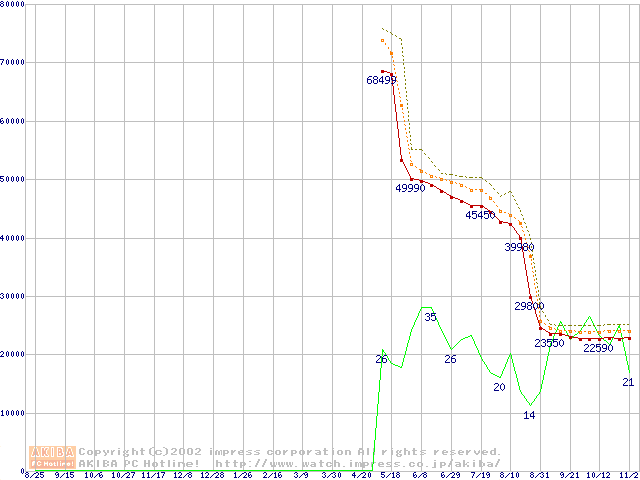 Pentium 4 2.4B GHz リテールパッケージの価格推移