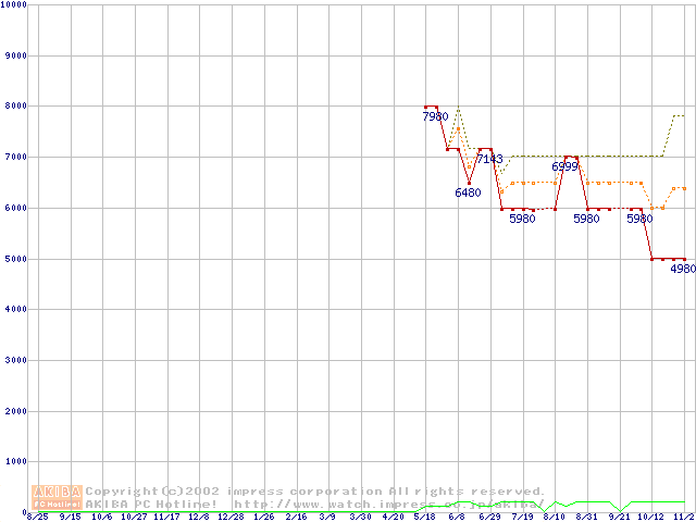PC3200(DDR400) DDR SDRAM DIMMの最安値推移