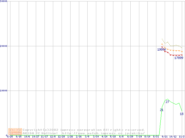 Athlon XP 2200+ (1.8GHz) リテールパッケージの価格推移