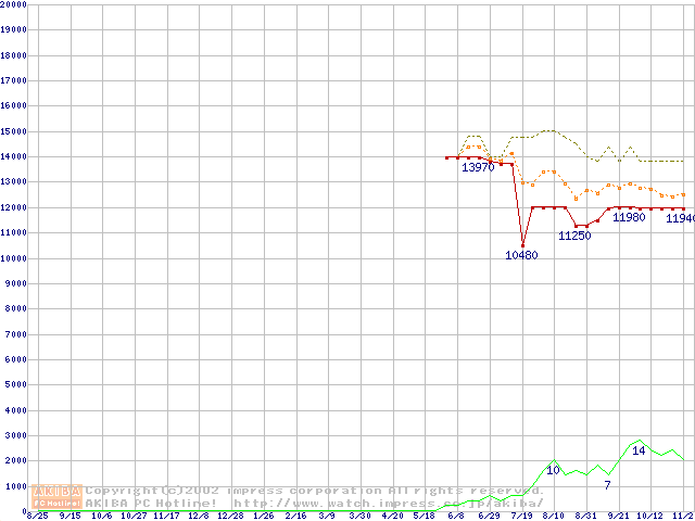PC800-40 DRDRAM RIMM ECC対応の最安値推移
