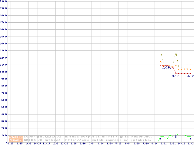 Socket A (OPGA,FSB 200MHz,L2 256KB)の最安値推移