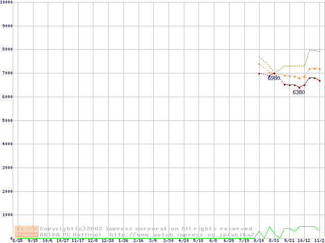 Socket 370 (FC-PGA,FSB 100MHz,L2 128KB,Coppermine)の最安値推移