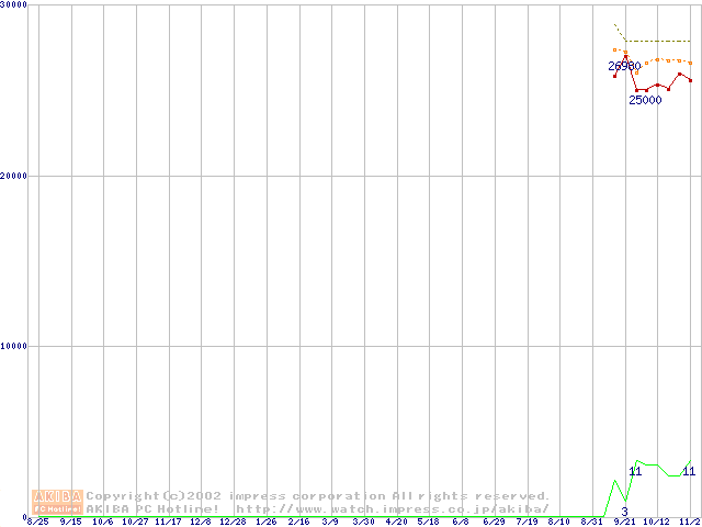 Socket A (OPGA,FSB 266MHz,L2 256KB,Thoroughbred)の最安値推移