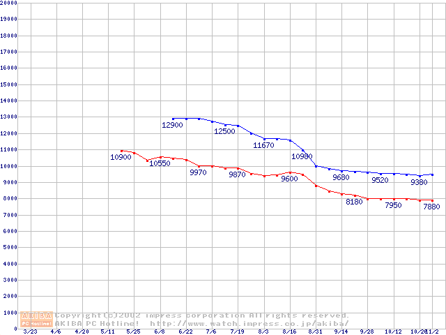 | [↓次グラフ]: | Socket 370 (FC-PGA2,FSB 100MHz,L2 256KB,Tualatin)の最安値推移 |