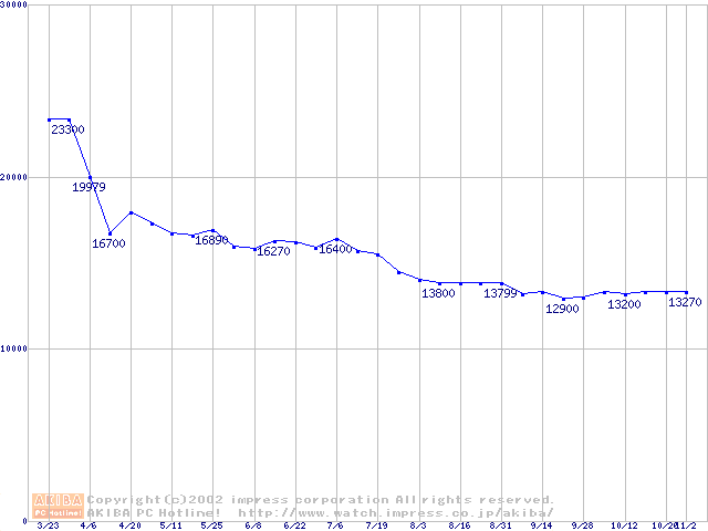 | [↑前グラフ]: | Socket 370 (FC-PGA2,FSB 133MHz,L2 512KB)の最安値推移 |