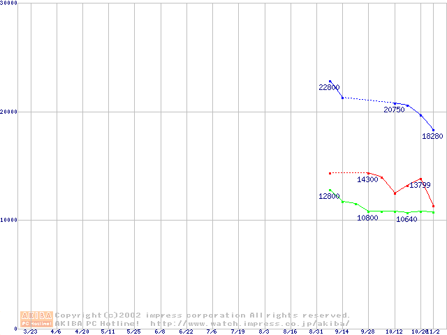 | [↑前グラフ]: | DiamondMax Plus 9 (7200rpm,8MB,UltraATA/133,FDB)の最安値推移 |
