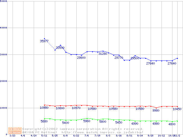 | [↓次グラフ]: | PC800-45 DRDRAM RIMMの最安値推移 |