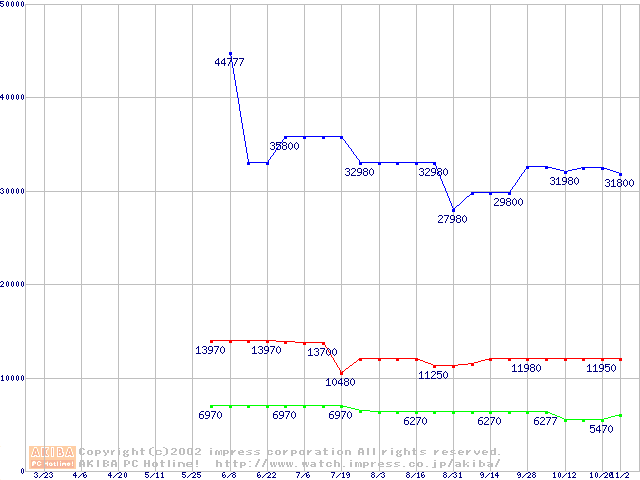 | [↓次グラフ]: | PC800-45 DRDRAM RIMM ECC対応の最安値推移 |