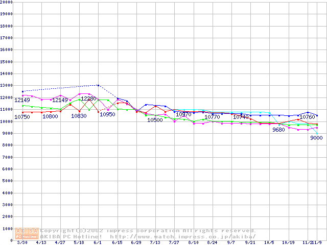 | [↑前グラフ]: | 2.5インチHDD 10GB~20GB未満(9.5mm厚)の最安値推移 |