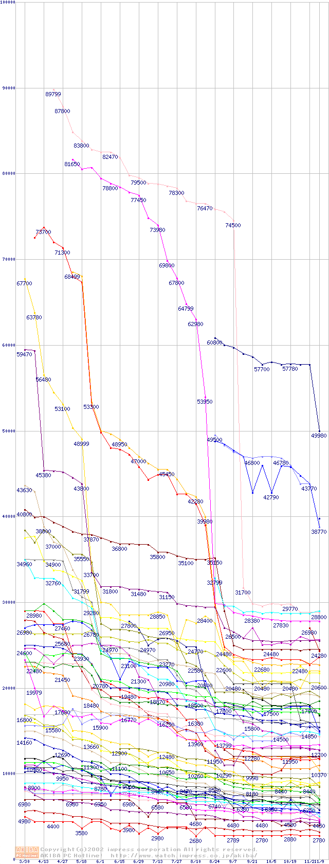 CPU主要製品の最安値推移