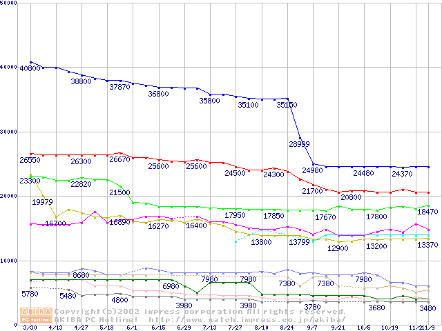 Socket 370・FSB 133MHzの最安値推移