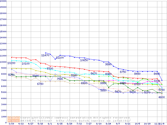 Socket 370・FSB 133MHzの最安値推移