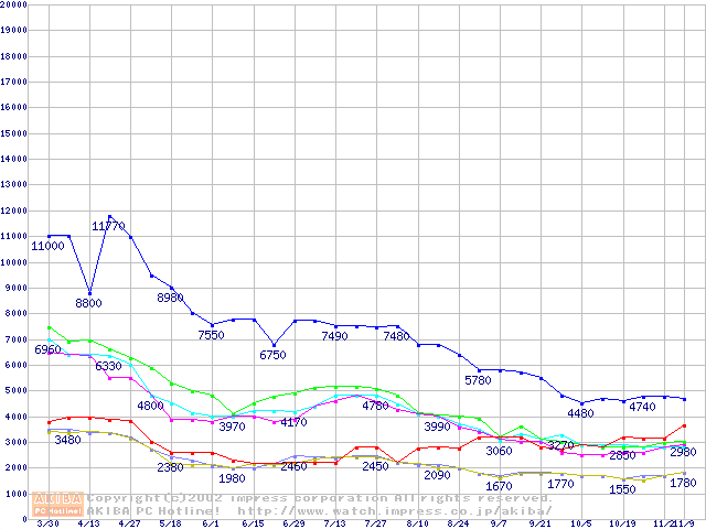 メモリ主要製品の最安値推移