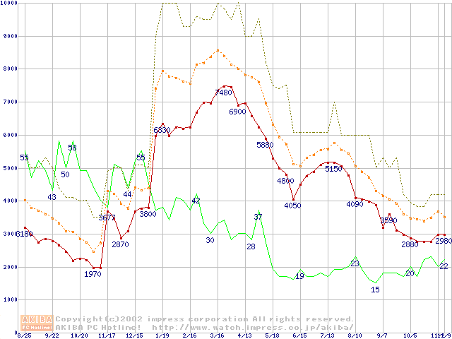 メモリ主要製品の最安値推移
