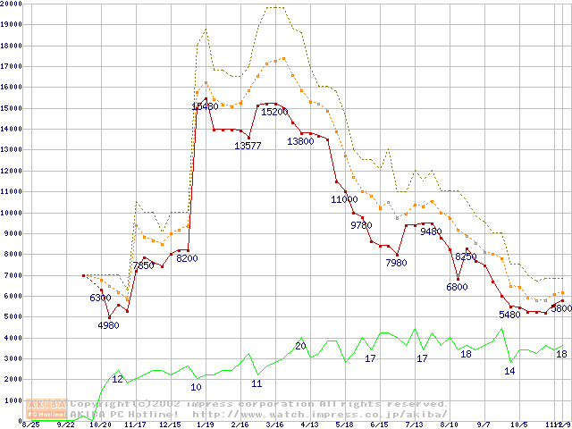 PC133 SDRAM DIMM CasLatency=2の最安値推移
