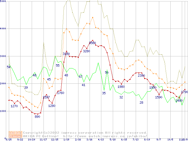 PC133 SDRAM DIMM CasLatency=3の最安値推移
