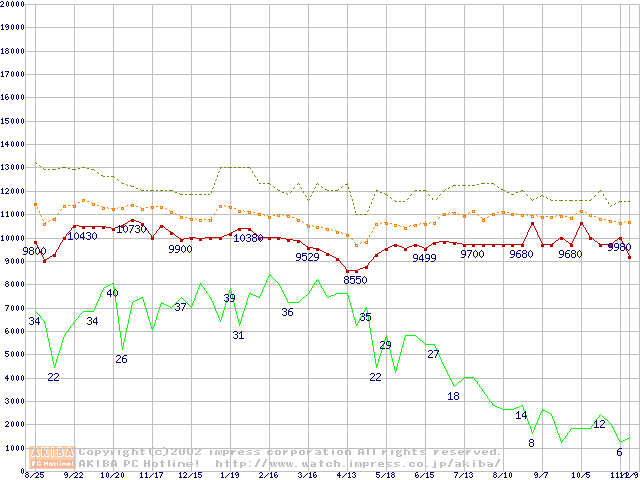 PC800-45 DRDRAM RIMMの最安値推移