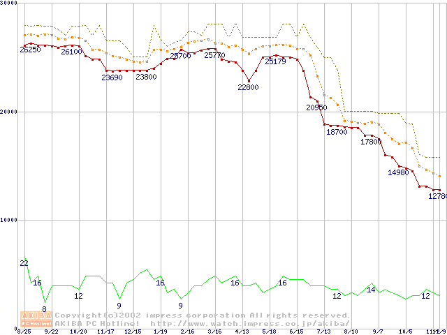 Pentium III 1GHz SECC2 リテールパッケージの価格推移
