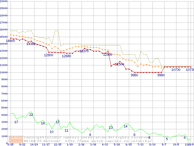 WD Caviar (5400rpm,UltraATA/100,2MB)の最安値推移