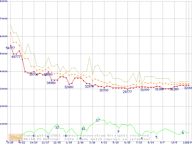 PC800-45 DRDRAM RIMM ECC対応の最安値推移