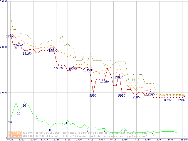 Socket A (PGA,FSB 200MHz,L2 256KB,Palomino)の最安値推移