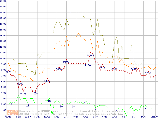 PC133 SDRAM DIMM CasLatency=3 ECC対応 Registeredタイプの最安値推移