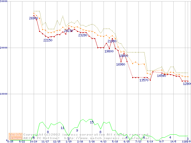 Socket A (OPGA,FSB 266MHz,L2 256KB,Palomino)の最安値推移