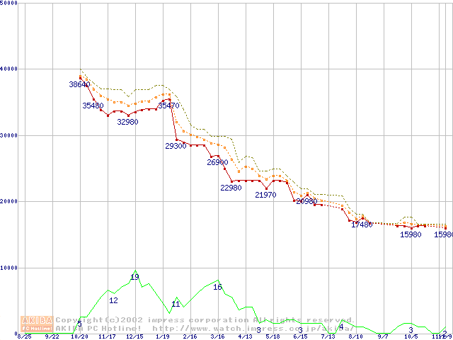Athlon MP 1800+ (1.53GHz) バルクの価格推移
