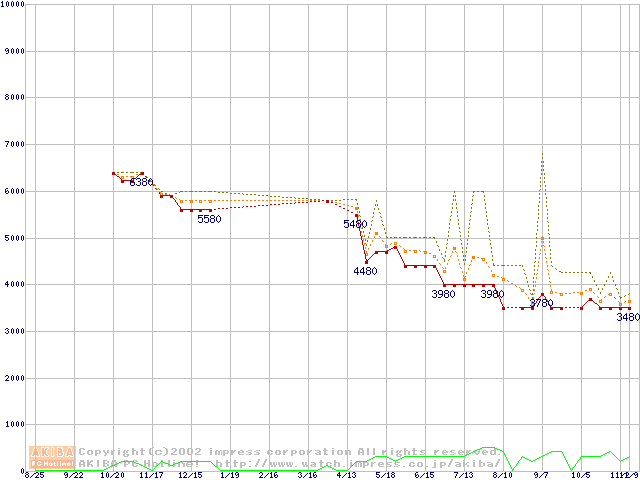 Socket 370 (PGA,FSB 133MHz,L2 64KB)の最安値推移
