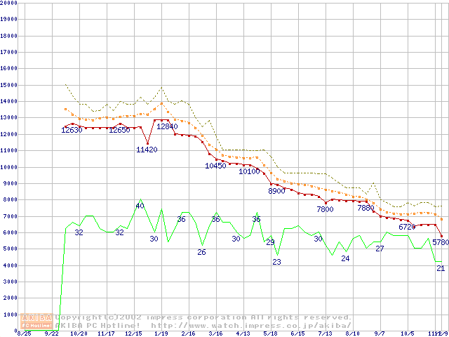 Celeron 1.20GHz FC-PGA2 リテールパッケージの価格推移