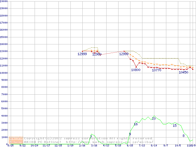 MKシリーズ (9.5mm,4200rpm,2MB,FDB,20GB/Platter)の最安値推移
