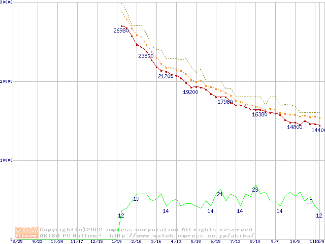 MKシリーズ (9.5mm,4200rpm,2MB,FDB,20GB/Platter)の最安値推移