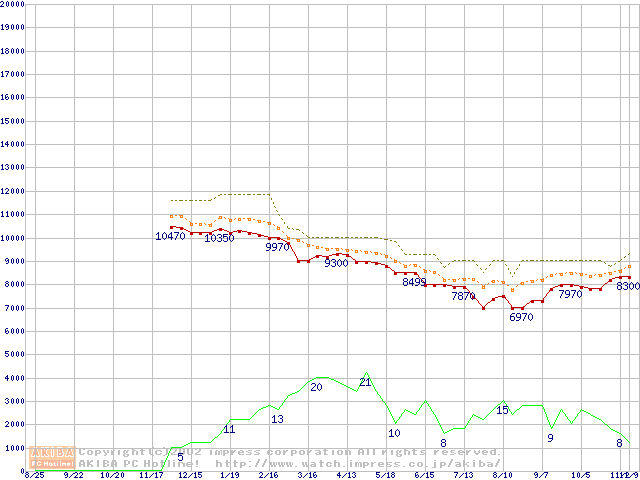 HDD主要製品(最安値1万円未満)の最安値推移