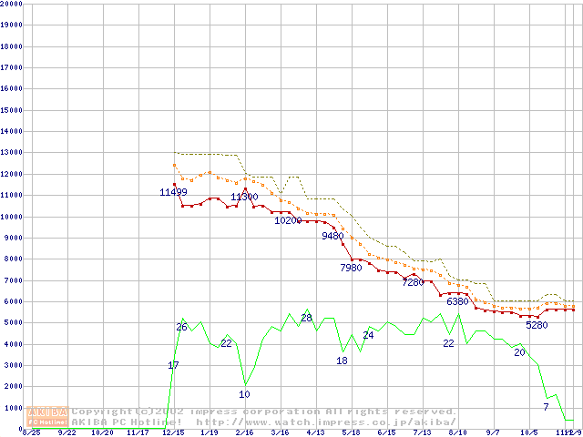 Duron 1.2GHz リテールパッケージの価格推移