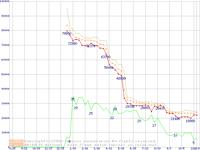 Pentium 4 2.20GHz リテールパッケージの価格推移